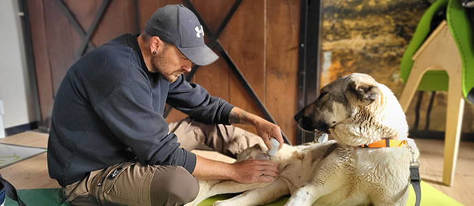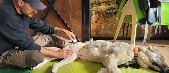 Als Tierphysiotherapeut bin ich täglich für ihn da und passe Behandlungen, Ruhezeiten und Bewegung genau an seinen aktuellen Zustand an. Dazu gehören je nach Bedarf: